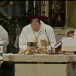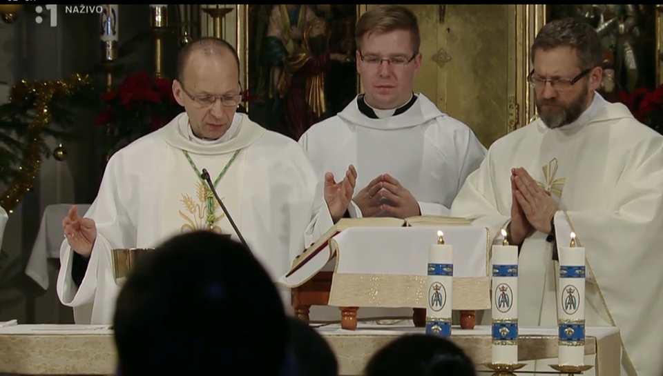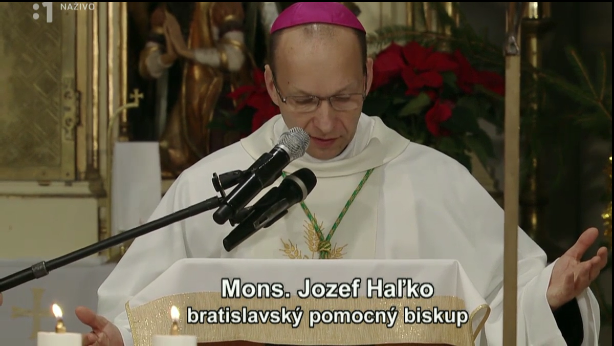 O polnoci sme sa spoločne stretli pri oltári Spasiteľa na slávnostnej Sv. Omši, ktorú celebroval J. E. Mons. Jozef Haľko, bratislavský pomocný biskup, ktorý rovnako predniesol homíliu. Svätá Omša bola vysielaná v priamom prenose do celého Slovenska.