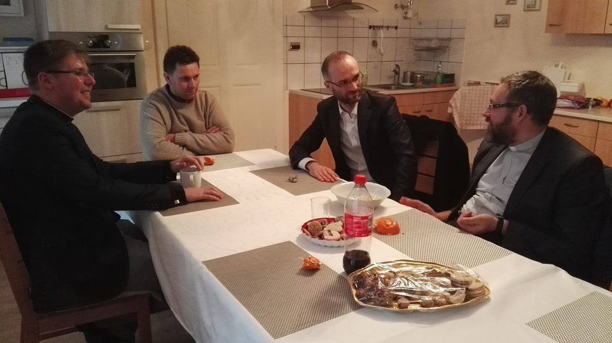 V druhý sviatočný deň sme sa vydali na návštevu našich bratov, pôsobiacich v materskom dome vo Viedni. Príležitosťou na spoločnú oslavu boli meniny generálneho vikára o. Szcepana Perycz-Szcepańskiego, ktorý nás pozval na lahodnú kávu a tiež prechádzku ulicami Viedne, ozdobenými tisícmi svetiel a vianočných dekorácií. Naše kroky smerovali do Katedrály sv. Štefana, ktorá nás privítala vyzváňaním zvonov, ku cti svojho patróna. Poslednou bodkou bratskej návštevy bola spoločná večera pri sviatočne vyzdobenom stole.