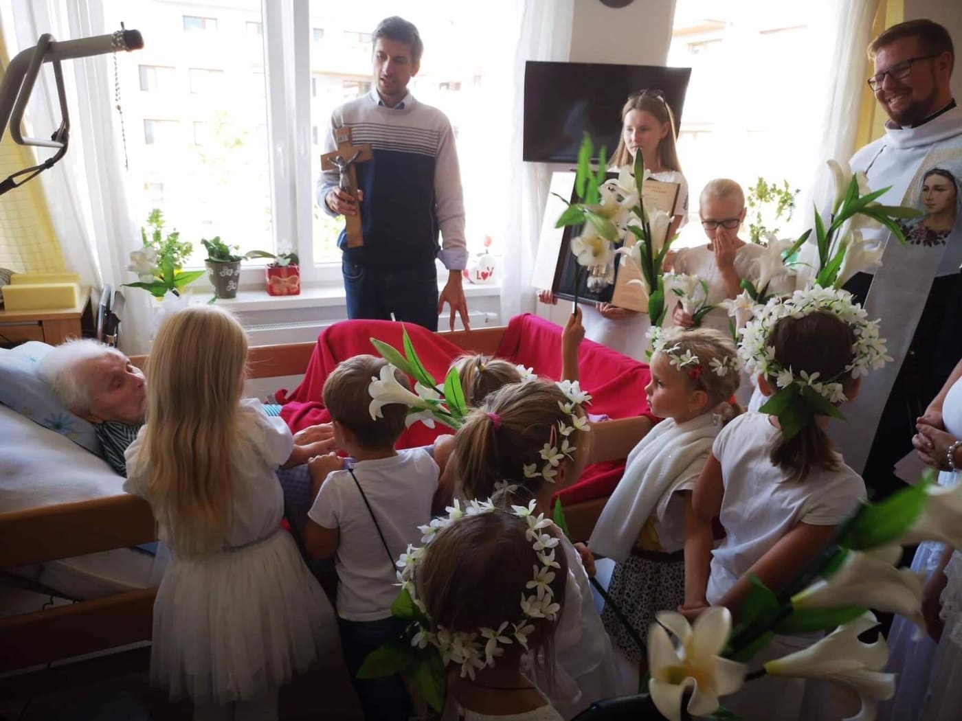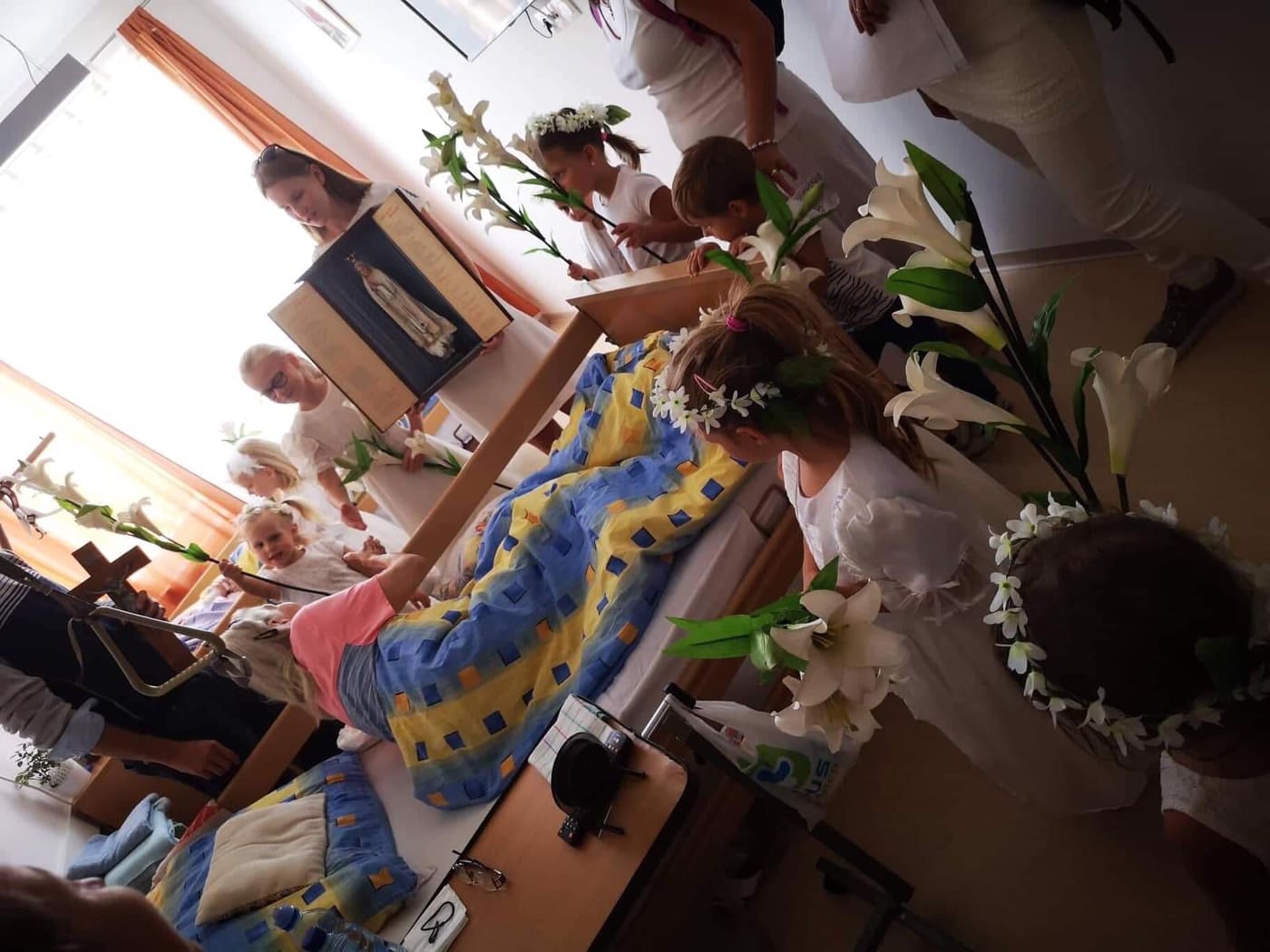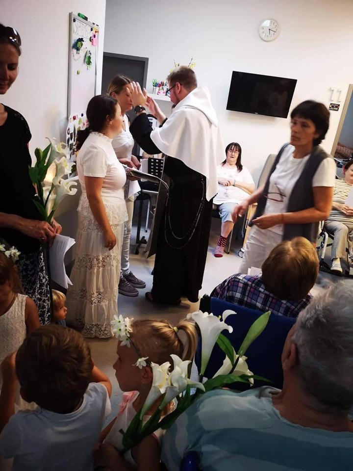 V DSS Gerion, v Záhorskej Bystrici, kde našlo svoje útočisko v poslednom štádiu svojho života niekoľko starých a chorých ľudí sme prežívali niekoľkodennú udalosť, návštevu Panny Márie v znaku jej zázračnej sochy z Fatimy. Slávnosť bola o to dôležitejšia, že pritiahla okolo Matky Božej nielen starých a chorých, ale aj deti s ich rodinami, ktorí sa prišli spoločne modliť a zveriť Božej Matke pod ochranu celý Domov sociálnych služieb Gerion. Máriu sme privítali uprostred ľalií a spevov. Otec Faustín, novokňaz, udelil všetkým svoje novokňazské požehnanie. Táto chvíľa bola pre nás Tešiteľov o to výnimočnejšia, lebo nás podnietila k uvažovaniu nad slovami, ktoré nám vo svojom duchovnom testamente odovzdal otec zakladateľ: „Súcítiť s tými, čo sú  chorí na tele či na duši, je vašim svätým povolaním, je to vaša povinnosť!“