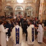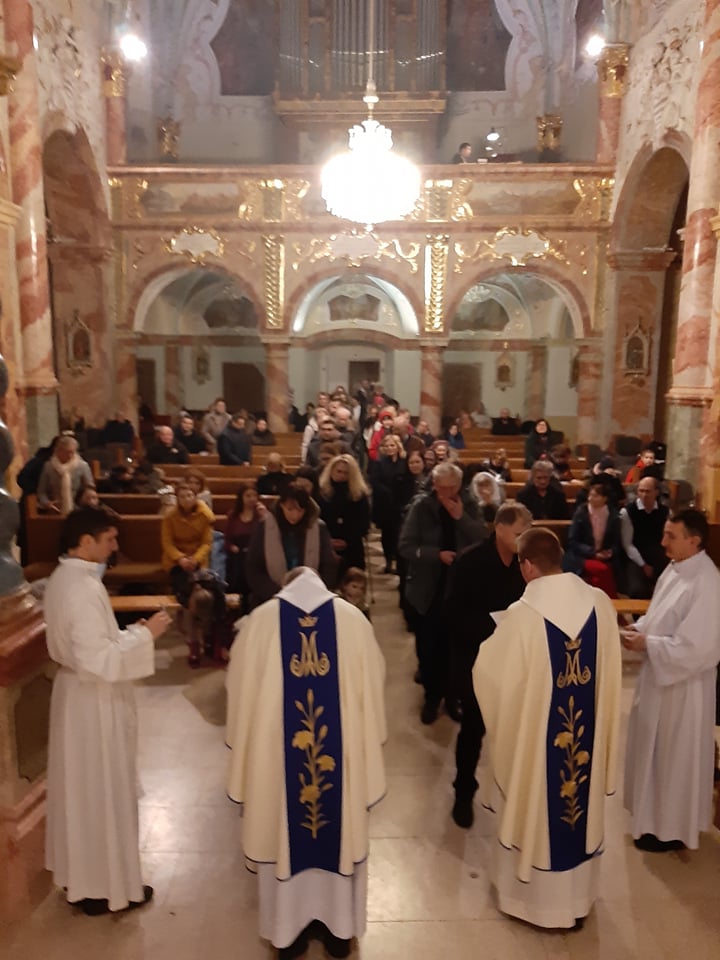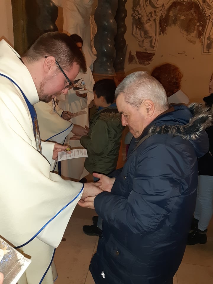 Utorkový večer v našej mariánskej bazilike oplýval duchovnými udalosťami. Najhlavnejšou z nich bolo liturgické slávenie spomienky Lurdskej Panny Márie. Slávnostnej svätej omši predsedal generálny predstavený našej Kongregácie P. Michał M. Krysztofowicz, ktorý mal aj priliehavú kázeň. Hovoril o tom, že si tento rok pripomíname už po 28. krát Medzinárodný deň chorých, ku ktorému pápež František napísal zvláštne posolstvo. Po homílii P. Michal spolu s P. Faustýnom udeľovali sviatosť pomazania chorých. Odchádzajúc od stupňov oltára veriaci dostávali pamätný obrázok s modlitbou k Matke Božej. Po svätej omši mali veriaci možnosť uctiť si relikviu sv. Bernadety Soubirous.