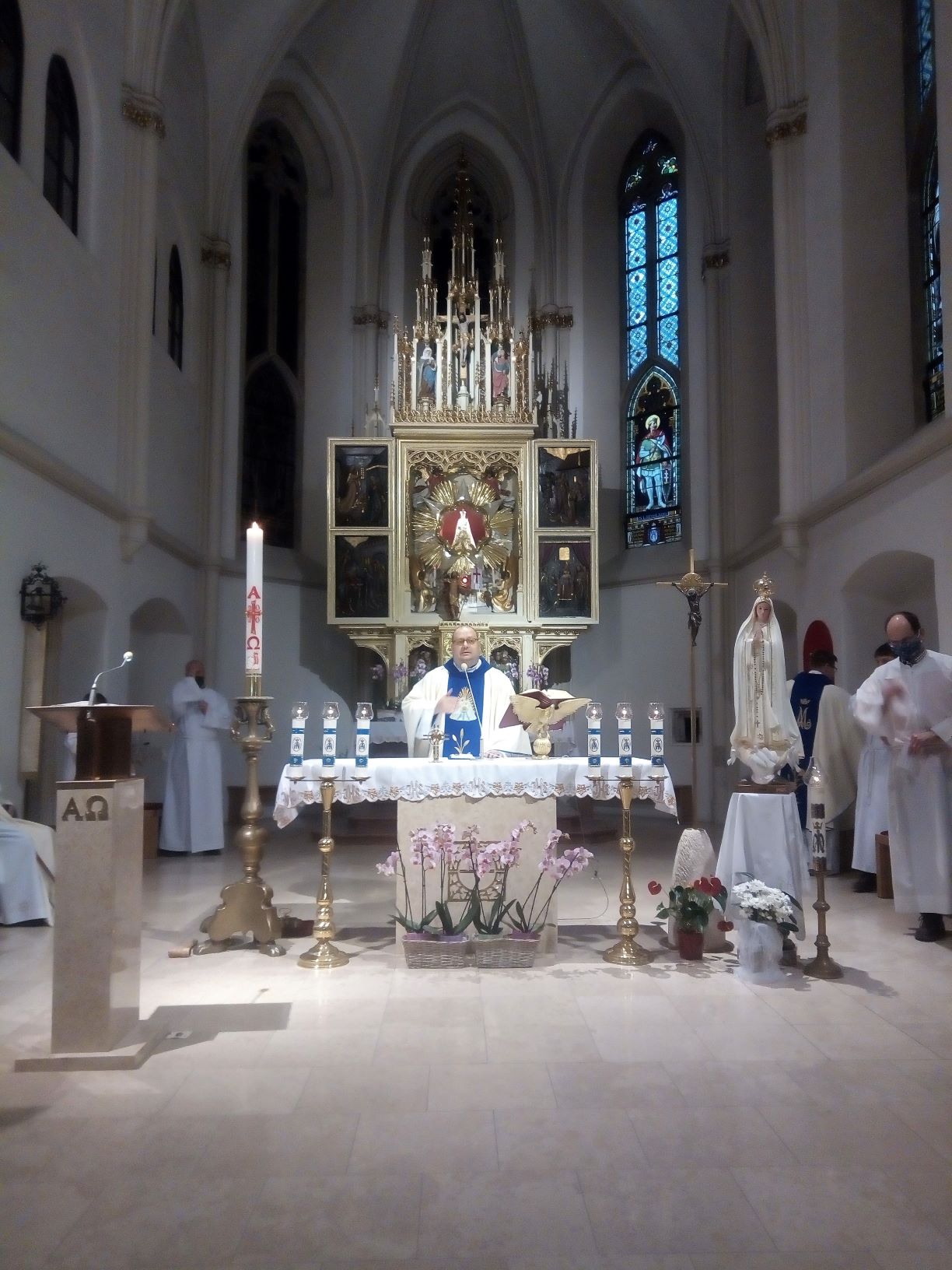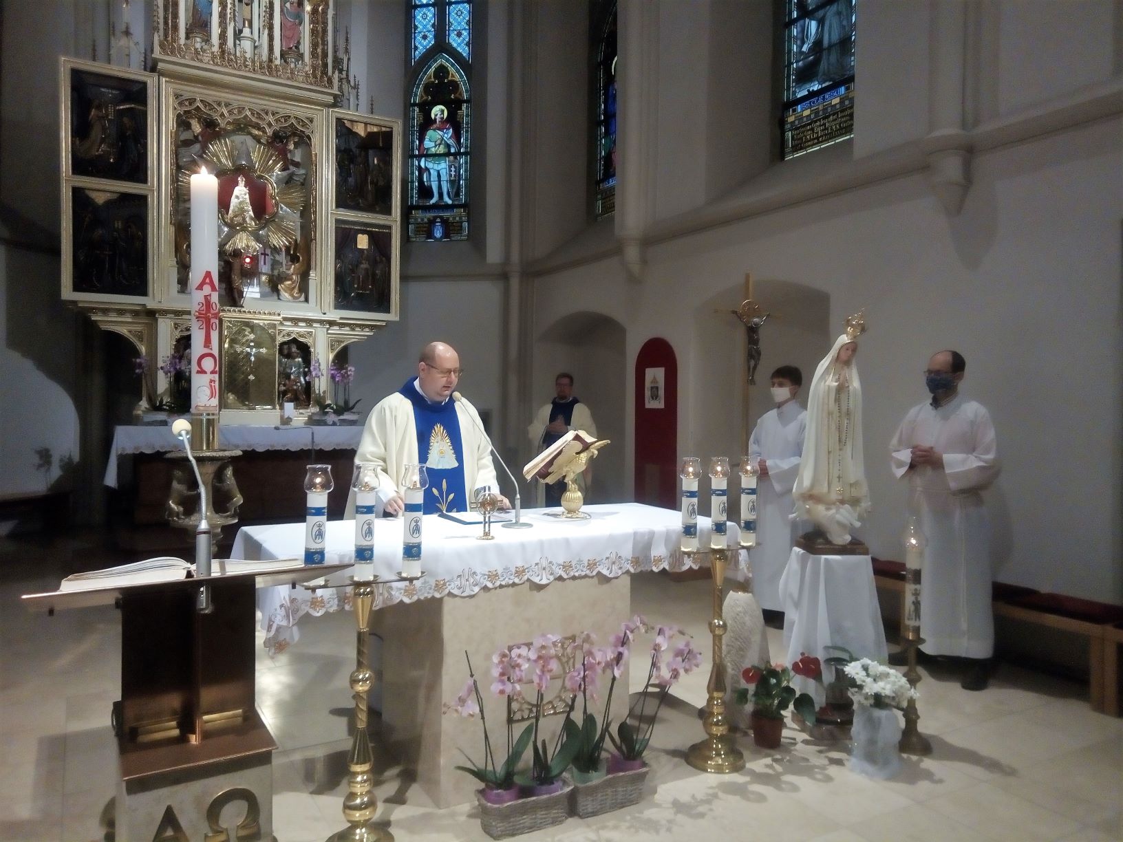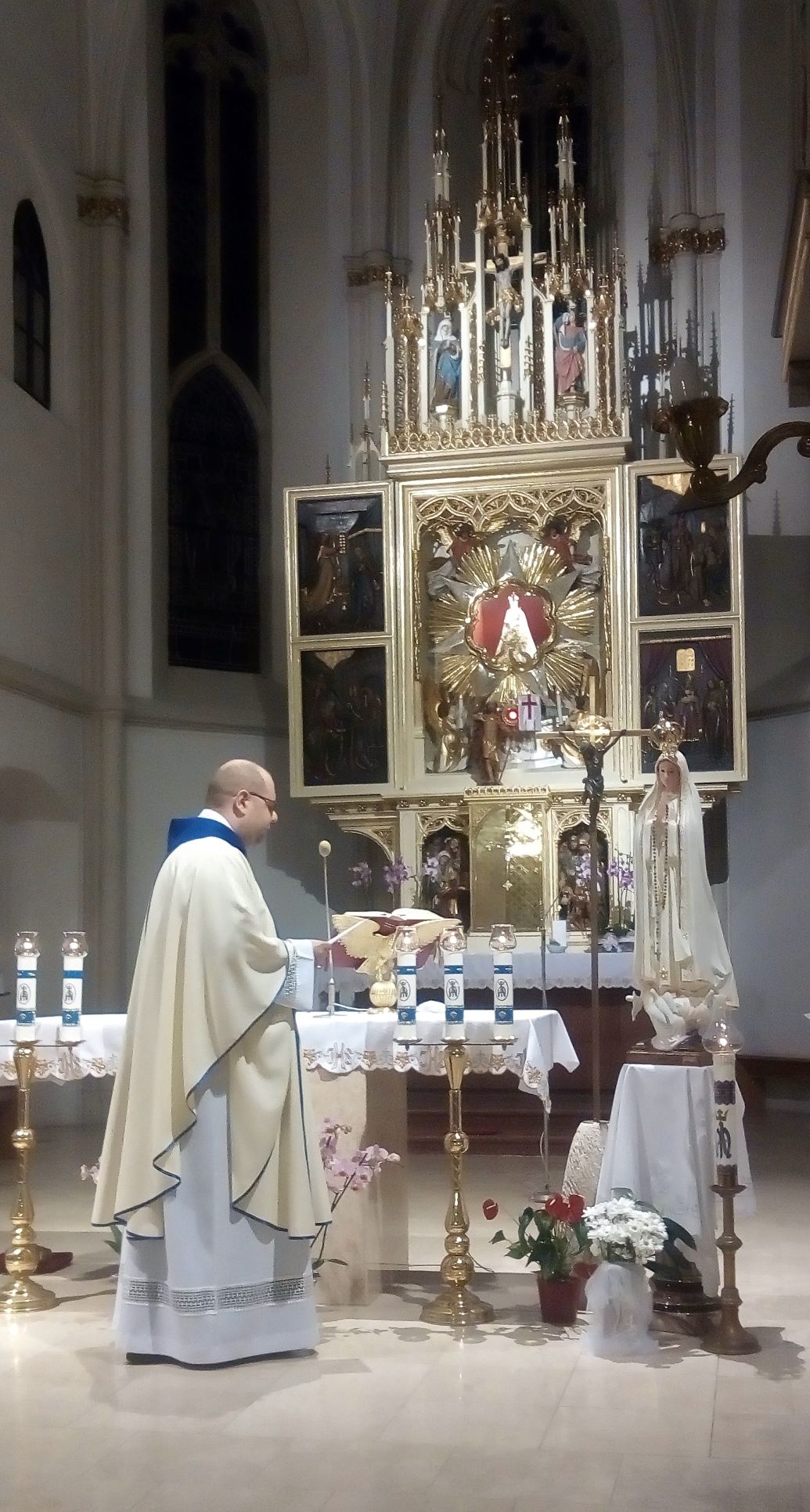 V deň liturgickej spomienky na Fatimskú Božiu Matku sme prežívali v našej bazilike v Marianke slávnostnú Eucharistiu, ktorej predsedal o. Michał Krysztofowicz, generálny predstavený našej Kongregácie. Slávnostnú homíliu mal o. Faustyn Wesołowski počas, ktorej sa odvolal na evanjelium spájajúc s ním fatimské posolstvo dotýkajúce sa vízie pekla. Po svätom prijímaní sme sa spoločne zasvätili Nepoškvrnenému Srdcu Panny Márie a veriaci na príhovor fatimských detí, prítomných v relikviách prijali dar Božieho požehnania. Fatimské zjavenia sú hlboko spojené s tešiteľskou spiritualitou, zdôrazňujú potrebu vynáhrady za hriechy spôsobom naznačeným Božou Matkou.