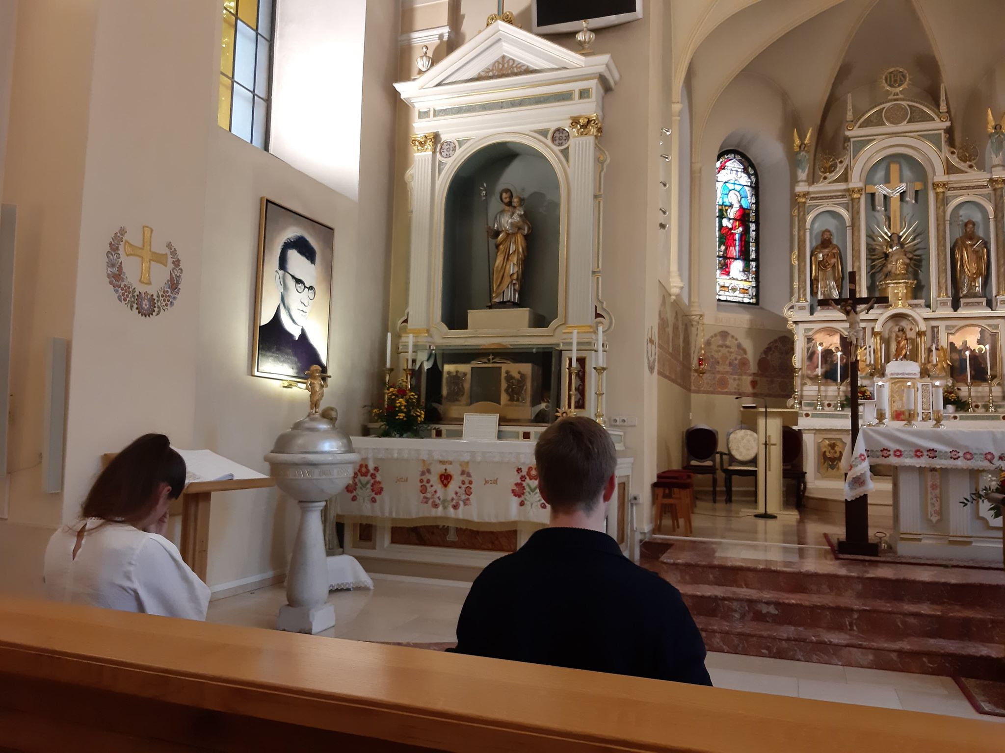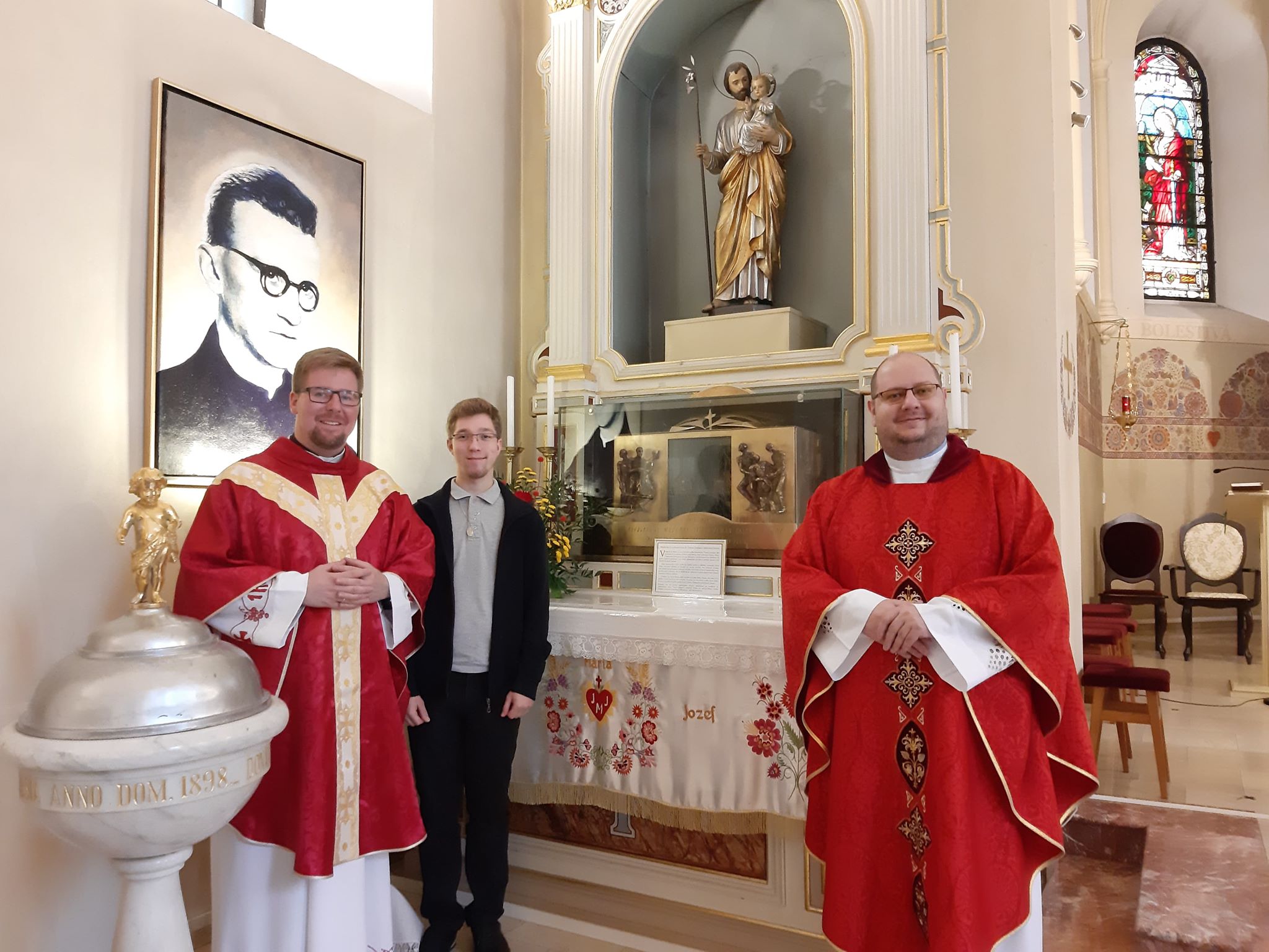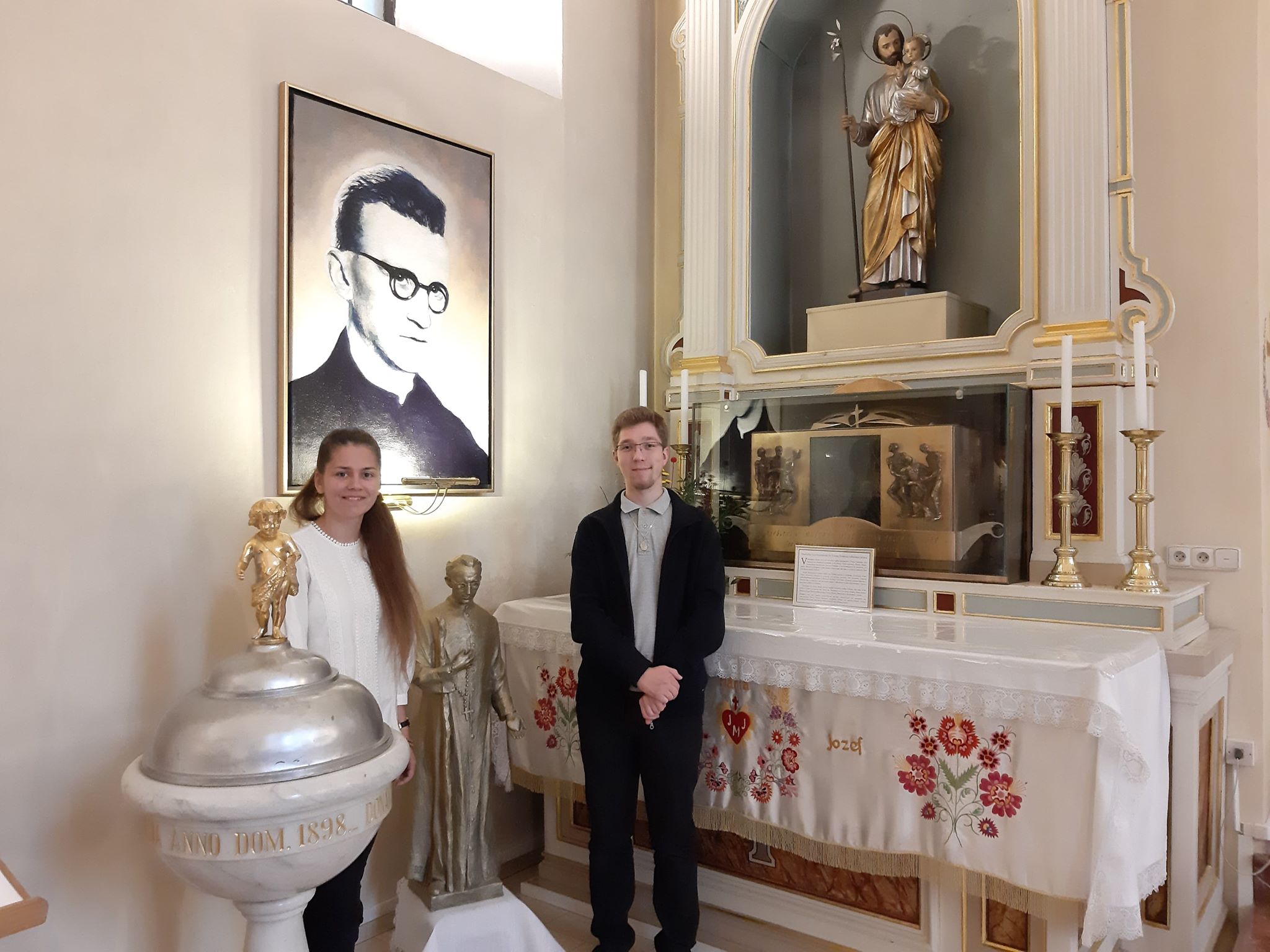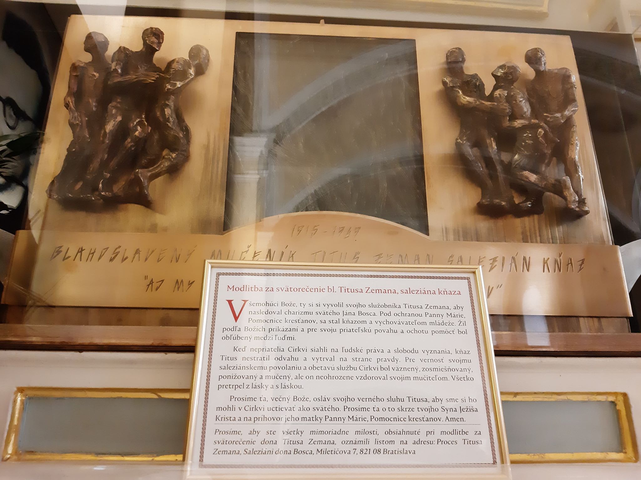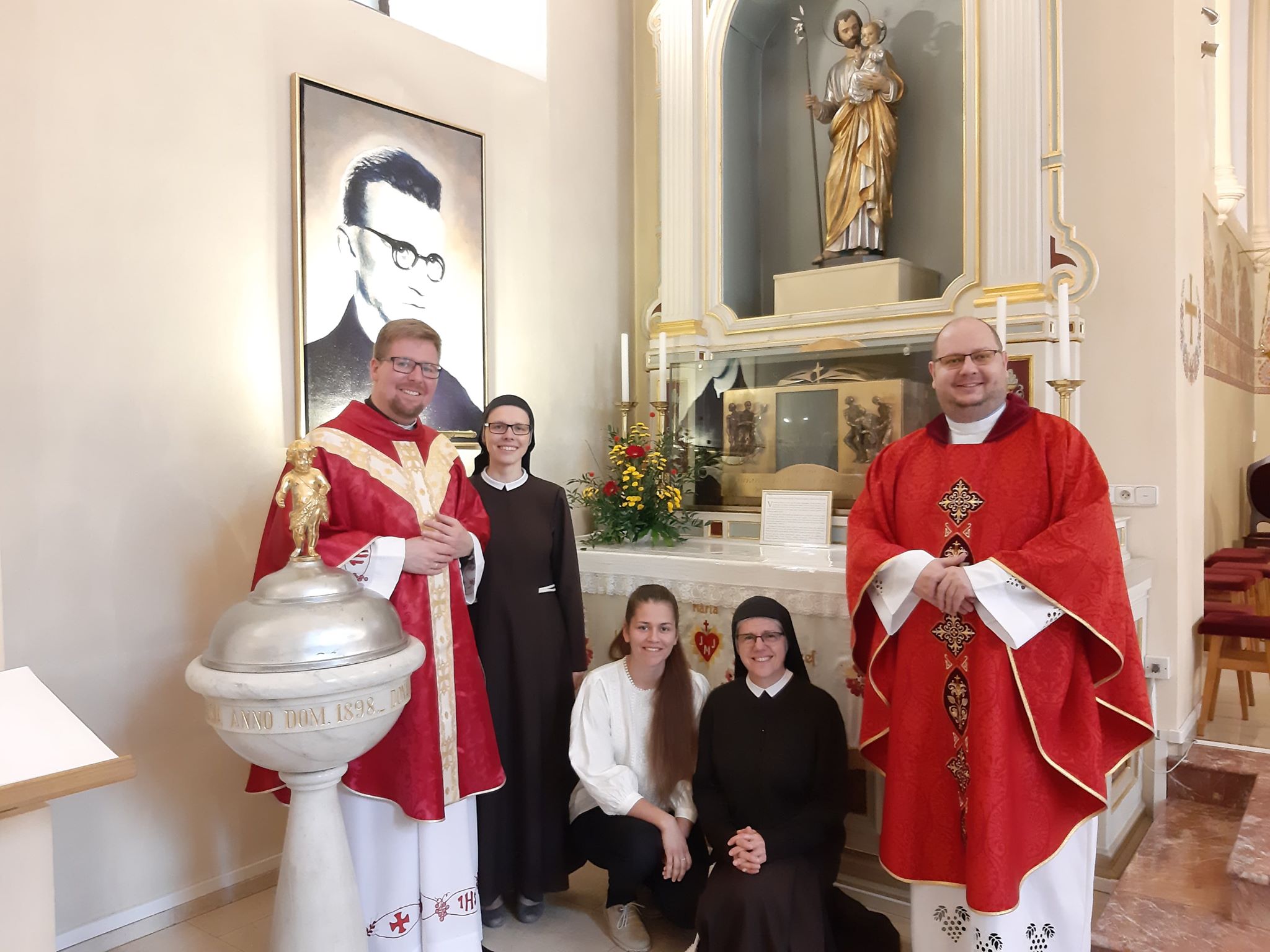 Krátko po spoločnom obede sme sa vybrali do Vajnor, aby sme navštívili bl. Titusa Zemana. Našu púť sme plánovali už dlhšiu dobu, ale Pán pre nás vybral najvhodnejší okamih našej spoločnej púte. Úmysel, ktorý nás sprevádzal na tejto ceste, sa dotýkal nových povolaní. Spolu so sestrami kapucínkami sme sa modlili na tento úmysel pri oltári nášho Majstra z Nazaretu. Hlavným celebrantom bol o. Michal Krysztofowicz a o. Faustyn Wesołowski povedal príležitostnú kázeň, poukazujúc na životy a diela našich Zakladateľov. Po svätej omši sme sa pomodlili korunku k Božiemu milosrdenstvu a špeciálnu modlitbu na úmysel za povolania na príhovor bl. Titusa. Spoločnú púť sme ukončili malým agapé – kláštornou kávou a čerstvým melónom.