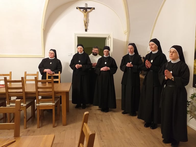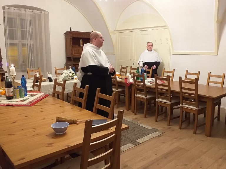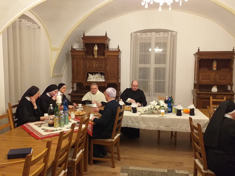 Po homílii sme si spoločne obnovili naše rehoľné sľuby. Po sv. omši sme sa presunuli do kláštora, kde p. Michal požehnal obnovenú Pamätnú izbu p. Polakoviča. Nasledovala spoločná večera, pri ktorej sme sa veľmi srdečne navzájom porozprávali a pozdieľali sa a boli sme veľmi radi, že sme sa konečne po dlhej dobe Covid – krízy spoločne osobne stretli.
